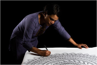 Colpiscono, in questa serie di lavori su carta di piccole e grandi dimensioni, la raffinatezza tecnica del disegno, la pulizia formale e l’armonioso bilanciamento dei toni ottenuto dall’accostamento di campiture piene e vuote, alternate con grazia e maestria creando un ritmo visivo brillante e imprevedibile. Persino nei Mandala a pianta centrale, apparentemente statici, l’occhio dell’osservatore può provare piacere nel percorrere direzioni diverse, seguendo ora un movimento radiale ora un movimento lineare, creando in questo modo una propria visione interiore e seguendo il libero corso dei propri pensieri.